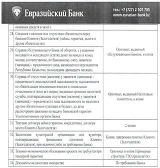 коммерческого банка АО «Евразийский Банк», где подробно описываются все виды