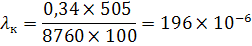 внешних повреждений на 100 км. кабеля в год m = 0,34.