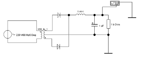 Собрать схему двухполупериодного трансформаторного