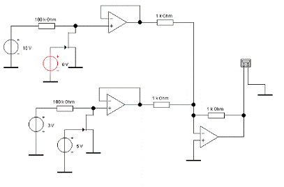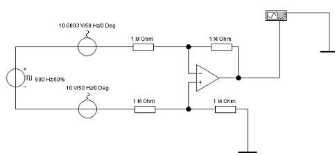 резистором. Провести исследование этой схемы, изменяя величины входных сигналов