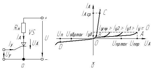 обратное напряжение превышает значение UП, то тиристор выходит из строя.