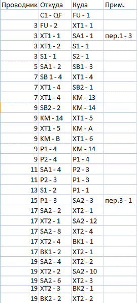 магистралей и шинок управления, сигнализации, напряжения и электромагнитов