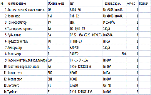 .3 Расчет и выбор силового электрооборудования