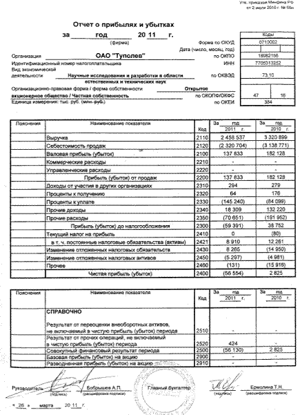 последний год в компании ОАО "Туполев" наблюдается тенденция к