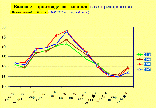 производится более 1,1 тыс. т молока, что по сравнению с 2009 годом больше на