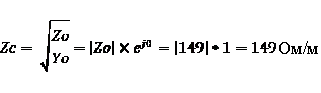 характеристического полного сопротивления Zc=149 Ом/м, соотношение при