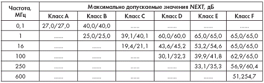 дБ, значения NEXT не нормируются и служат только для информативных целей.