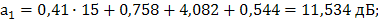 = 18,483 - 13,5 + 28 - 17,0 + 18,483 = 34,466 дБ;