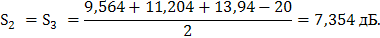 = 15,683 - 15,0 + 2∙15,381 - 13,5 + 15,683 = 33,628 дБ.