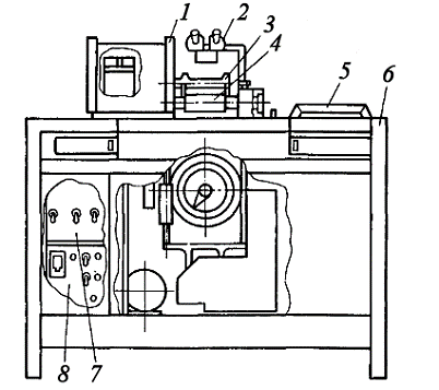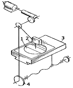 - столик з пластиною; 2 - пластина; 3 - стіл; 4 - алмазний різець