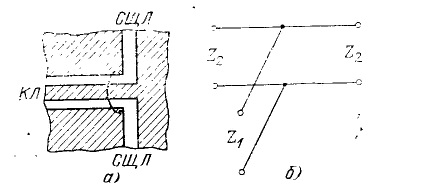 5.1.5 - Включення КЛ у СЩЛ(а), еквівалентна схема (б)