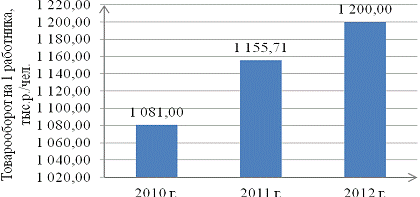 р. товарооборота, а в 2012 г. значение возросло на 8 коп. по сравнению с 2011