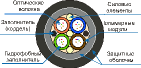 электромагнитного поля. Схему конструкции кабеля типа ОКСН можно увидеть на