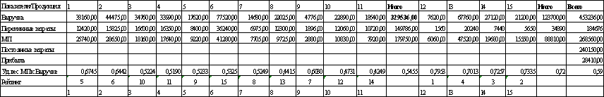 косвенных расходов и определение прибыли от реализации по видам продукции