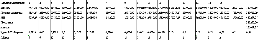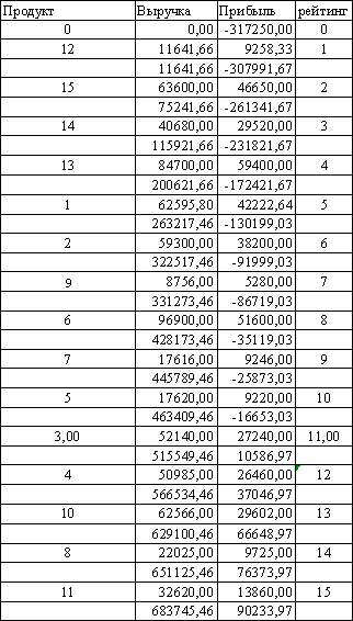 3. Оптимизации ассортимента продукции, определение прибыли от реализации