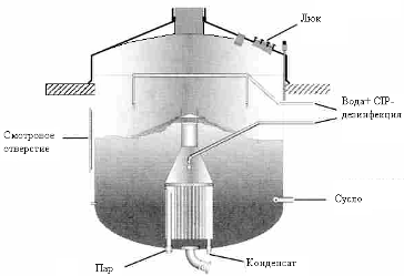 кипячения частей затор. Содержимое котла (затор или сусло) обогревается паром,
