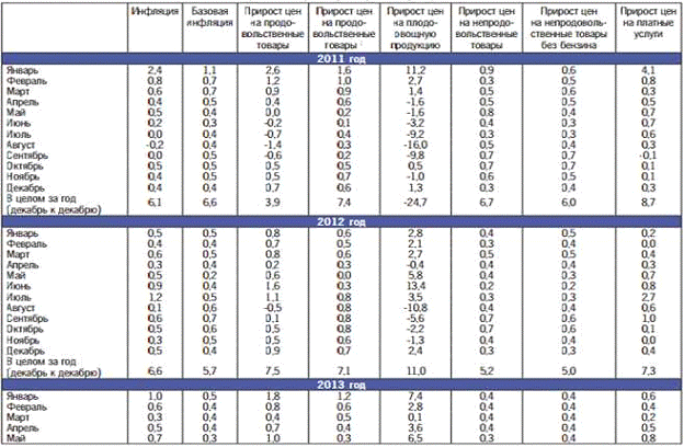 Таблица 1. Динамика потребительских цен по