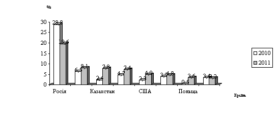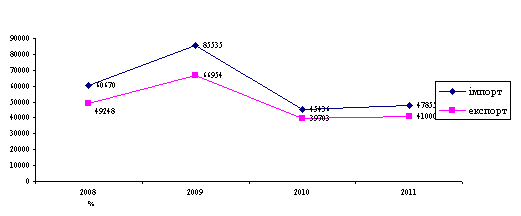 Динаміка експорту та імпорту продукції України за 2008-2011 рр.