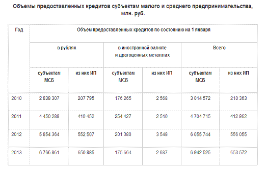 Кредитование малого и среднего бизнеса в России в 2013 г