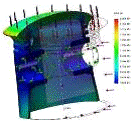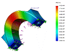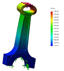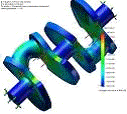 напряжение щеки коленчатого вала, рассчитанное в CosmosWorks