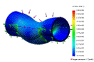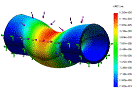 CosmosWorks больше в 4,2 раза, чем напряжение, рассчитанное по методике [1].