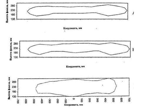 длине технологической оси зоны вторичного охлаждения (ЗВО) в диапазоне сечений