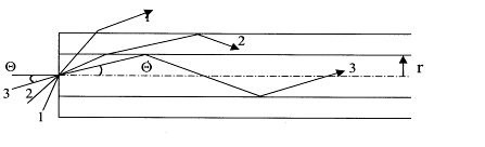 лучи. Только лучи, которые инжектируются (вводятся) в волокно под углами,