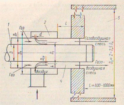 (смесителя) и камеры сгорания смеси. Воздух поступает в смеситель по