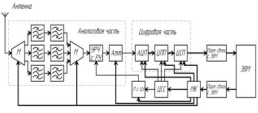 селекцию и усиление принимаемых сигналов. Далее сигнал поступает в цифровую