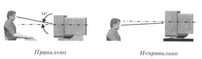 Монитор должен обязательно находиться прямо перед пользователем.