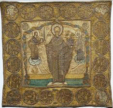 покровах алтарных престолов, на надгробных покровах святых, на одеждах