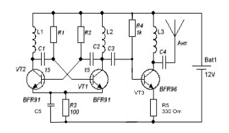 устройства наиболее подходит транзистор BFG591, т.к. его граничная частота работы, рассеиваемая