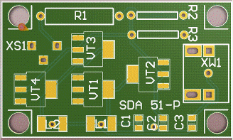 Устройство выполнено на двухсторонней печатной плате размером 45×25