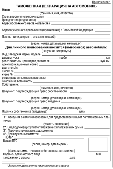 декларацию на товары, которые перевозятся не в коммерческих целях и только