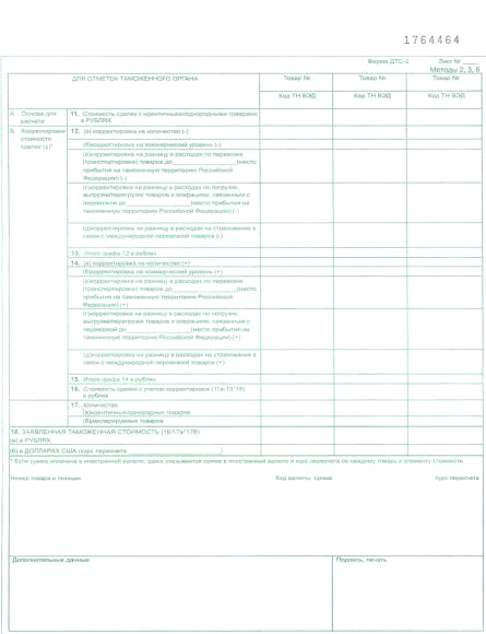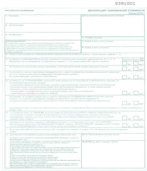 Декларация таможенной стоимости (ДТС) является