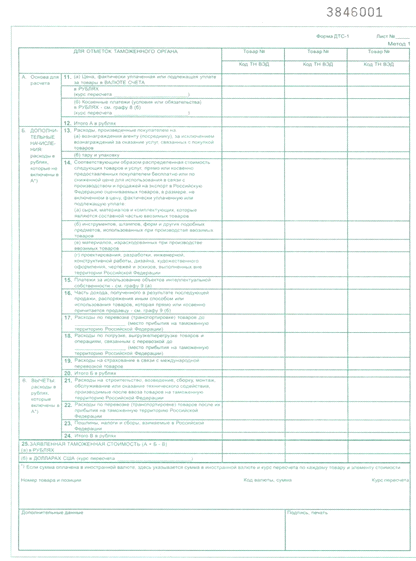 Форма ДТС-1 (метод 1) применяется в отношении