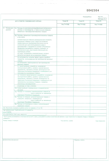 Декларация таможенной стоимости