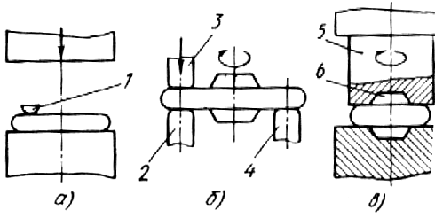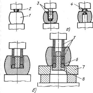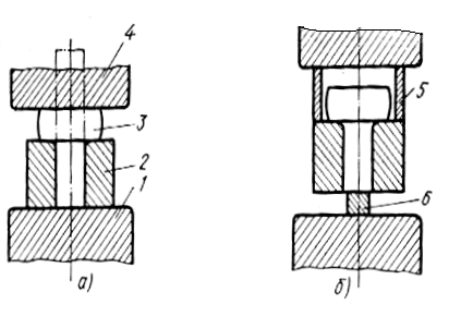 Рис. 1.3. Схемы высадки в штампе (а) и удаление