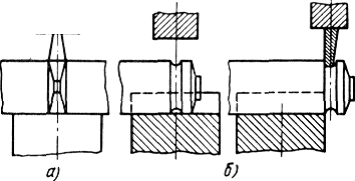 а - плоскими бойками, б - слитка с хвостовиком: