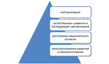 неконтролируемое развитие и самоуничтожение конфликта, достижение национального
