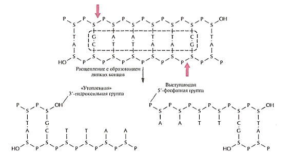 от друга, в результате чего образуются одноцепочечные комплементарные концы с
