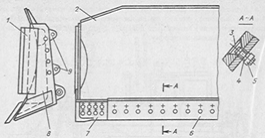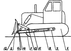 14 крепления отвала 2, наклонных упоров 9, поперечной связи 4 и раскосов 5