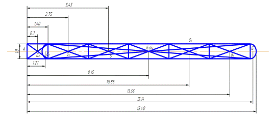 = 1,35 м;= xG3 + l3 = 1,35+4,1 =
