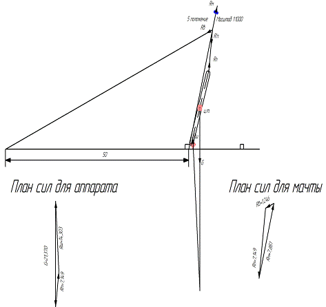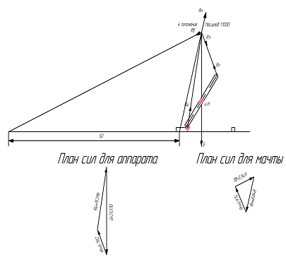 подъема аппарата. При такой схеме аппарат нельзя поднять мачтой в положение