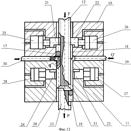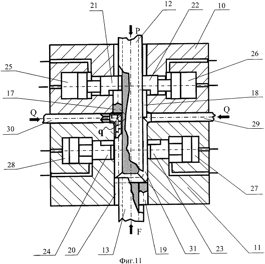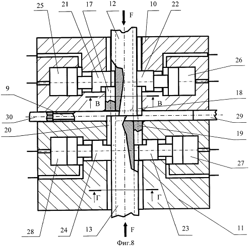 осевого сжатия трубной заготовки, гидроцилиндры со штоками, размещенные в