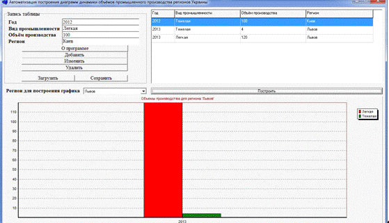 створення додатку який дозволяє будувати діаграми динаміки обсягів промислового