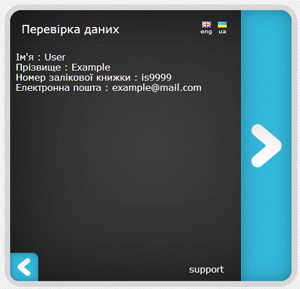 кнопки «Далі» користувач перейде до блоку, де він має засвідчитись, що всі
