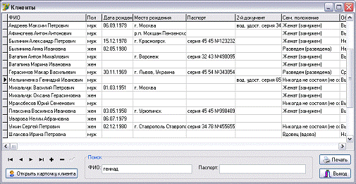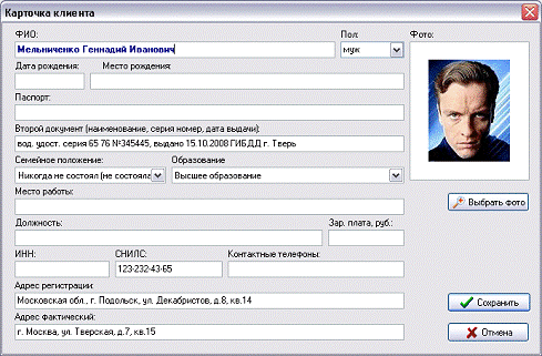 - учет клиентов банка - физических лиц;