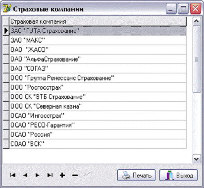 - список страховых компаний;