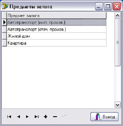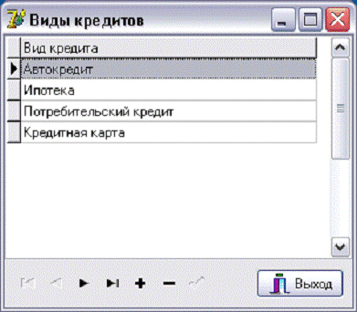 - ведение справочника видов кредитов (потребительский кредит, ипотека,